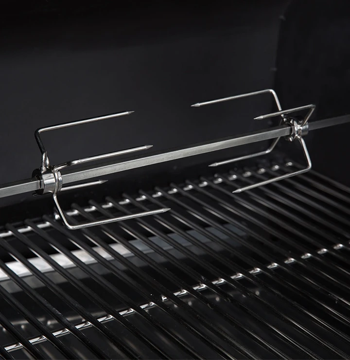 Zet jouw GMG Prime+ Pellet Grill om in een houtgestookte rotisserie. Geschikt om hele kippen, varkensschouders, lendenen, ribben en nog veel meer te bereiden op je pellet grill. De 110V motor is gebouwd om de buitenelementen te weerstaan en zit in een roestvrijstalen behuizing. Draai tot 10kg voedsel.
