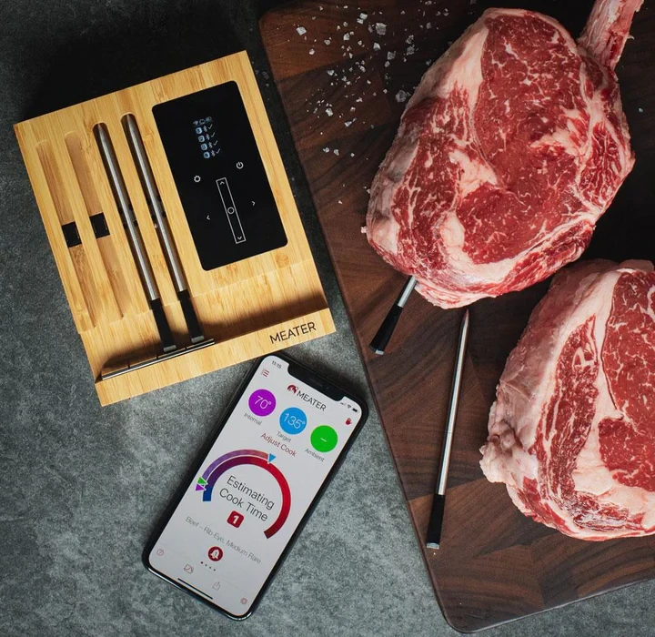 De Meater Block heeft een modern design gemaakt van echt hout zodat deze mooi past in uw keuken of tuin. Uiteraard kunt u 4 Meaters gelijktijdig gebruiken in verschillende gerechten, stukken vlees die allen een verschillende kern temperatuur behoeven en of een langere of kortere bereidingstijd. Door middel van het Touch Screen op het Block kunt u de verschillende gerechten eenvoudig stapsgewijs instellen.