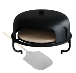 Als er één buitenkooktoestel tegenwoordig super populair is, dan is het de pizza oven. De OFYR Pizza Oven heeft een praktische pizzaschep, een dubbelzijdig te gebruiken gietijzeren plaat, een pizzasteen die op de gietijzeren gelegd wordt en een dubbele stalen cloche waarvan de buitenste laag over de binnenste laag te draaien is. In de gietijzeren plaat zitten openingen waardoor de hitte uit de OFYR kookeenheid in de cloche kan circuleren en de pizza snel verhit.