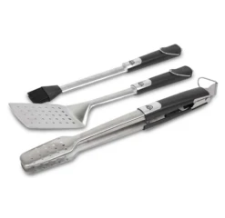 De Pit Boss 3-delige Tool Set beschikt over alles wat je nodig hebt om jouw grill de baas te blijven. Deze handige set bestaat uit een tang met vergrendeling, een geperforeerde spatel en een siliconen kwast. Elk stuk gereedschap heeft een roestvrije stalen behuizing en een zacht aanvoelend handgreep voor een comfortabel gebruik. Ze zijn ook elk voorzien van vergrote ophanglussen zodat het gereedschap binnen handbereik blijft. Je favorieten recepten bereiden is nu nog makkelijker met deze betrouwbare BBQ-Grillset.