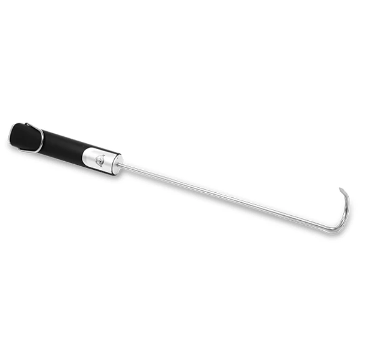 Flip en grijp je eten als een pro met de Pit Boss Pig Tail. Deze roestvrijstalen Pig Tail is gemaakt om jarenlang binnen en buiten te worden gebruikt. De comfortabele grip en het robuuste materiaal zullen er snel voor zorgen dat deze Pig Tail je favoriete kookaccessoire wordt. De Pit Boss Pig Tail heeft een extra lange handgreep en zacht aanvoelend materiaal. Je kunt gemakkelijk bij voedsel in de achterste hoeken van je grill en tegelijkertijd geniet je van de comfortabele, hittebestendige handgreep. De Pit Boss Pig Tail is uitstekend voor het grijpen van briskets, het omdraaien van ribbetjes, het flippen van hamburgers, en nog veel meer. De Pit Boss Pig Tail hangt ook direct aan je grill met behulp van de grote ophang lus. Hij is gemakkelijk schoon te maken en vaatwasmachine bestendig.