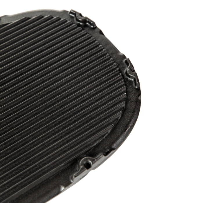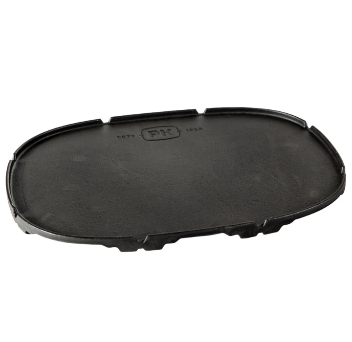 Deze 2-zijdige Cast Iron Griddle is de perfecte aanvulling voor het PKGO Camp & Tailgate Grilling System. Het heeft een gladde kant voor hamburgers, het dichtschroeien van vis, het grillen van groenten en natuurlijk het gegrilde ontbijt. De geribbelde kant is perfect voor steaks, kip en varkensvlees.