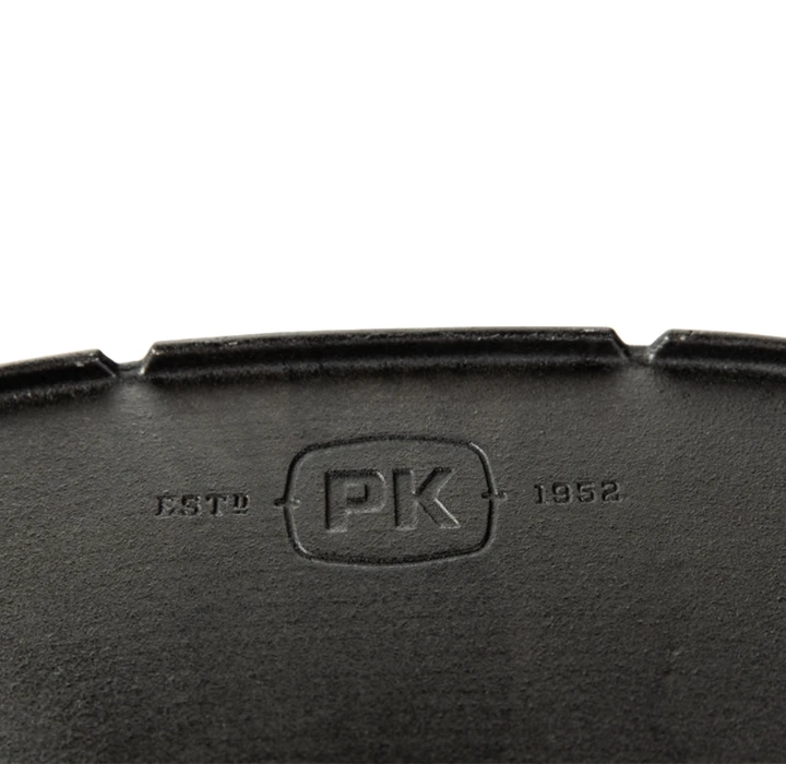 PK’s Cast Iron Griddles zijn gecoat met porselein emaille om roestvorming te minimaliseren en toch de hitte zeer goed vast te houden. Afbrokkelingen of krassen in de coating zullen het onderliggende gietijzer blootleggen, wat zal leiden tot roestvorming. Roest is typisch voor alle gietijzeren kookoppervlakken voor binnen en buiten. Wanneer je grilt met metalen gereedschap, zorg er dan voor dat u het oppervlak niet afschraapt. Gebruik voor het schoonmaken een grillborstel met zachte haren (bijv. nylon) in plaats van een metalen of draadborstel.